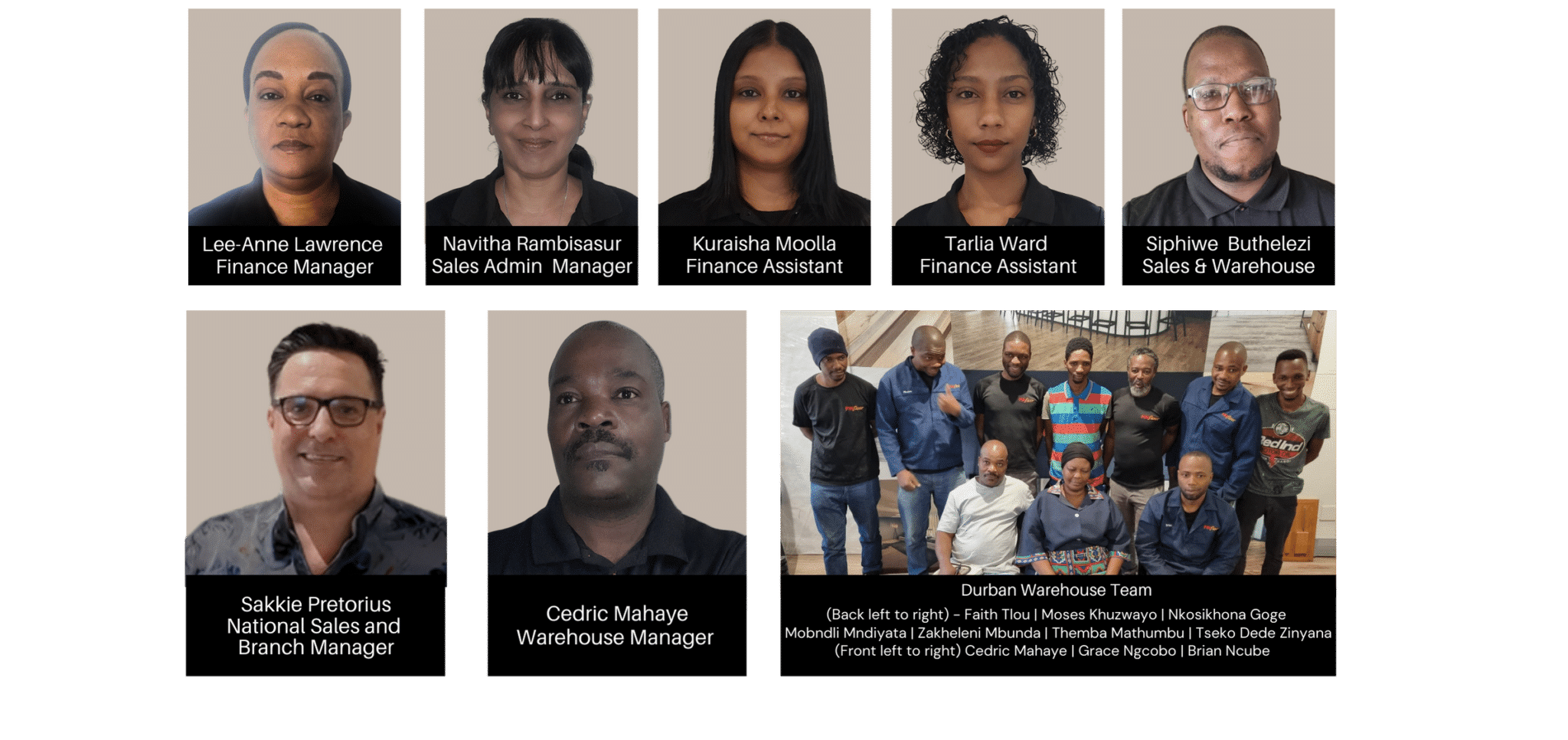 Below find the friendly faces of valued employees who are making a difference in our Johannesburg, Cape Town, and Durban branches.