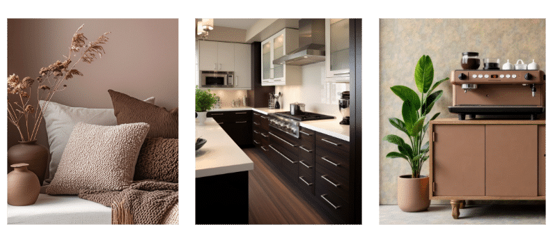 Incorporating Mocha Mousse through scatter cushions, upholstered furniture, sideboards, and our darker flooring options—available in laminate, vinyl, and engineered wood—elevates the overall look, creating a cohesive and inviting design.